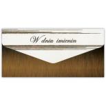 Po złożeniu format kartki DL, wyjątkowe złocenia, w środku życzenia i kieszonka na pieniądze. Dodatkowa koperta
