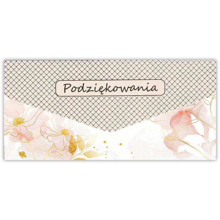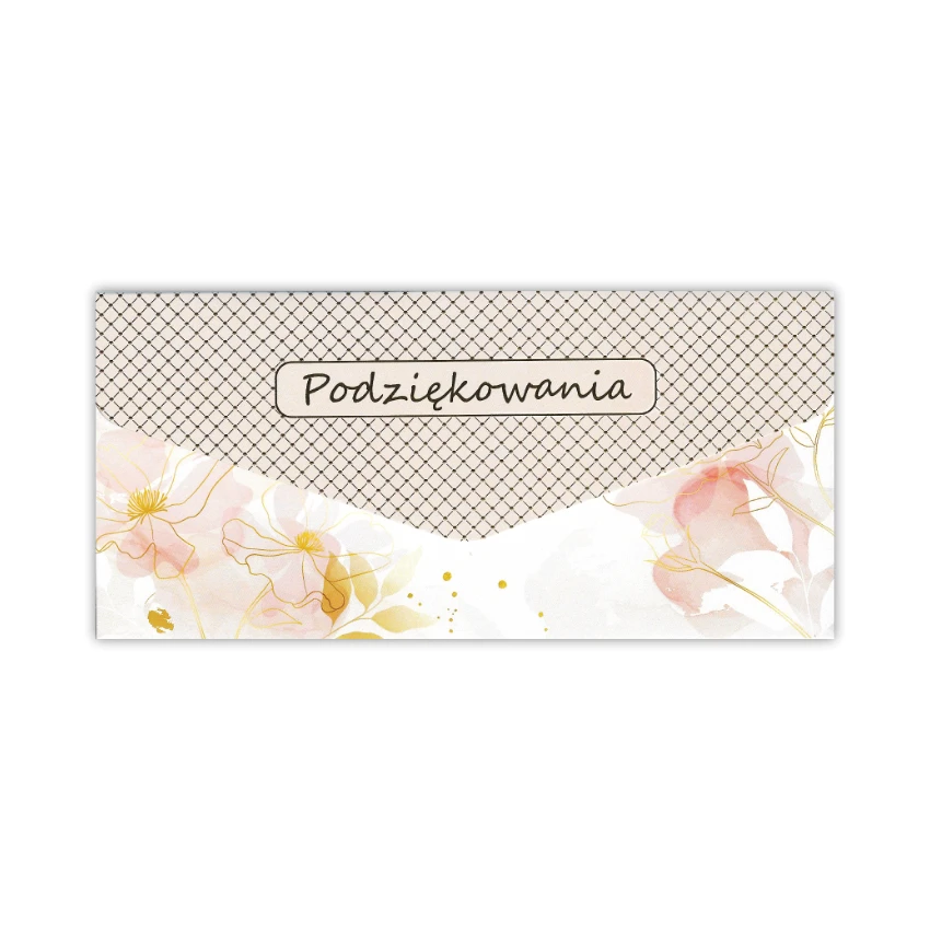 Po złożeniu format kartki DL, wyjątkowe złocenia, w środku życzenia i kieszonka na pieniądze. Dodatkowa koperta