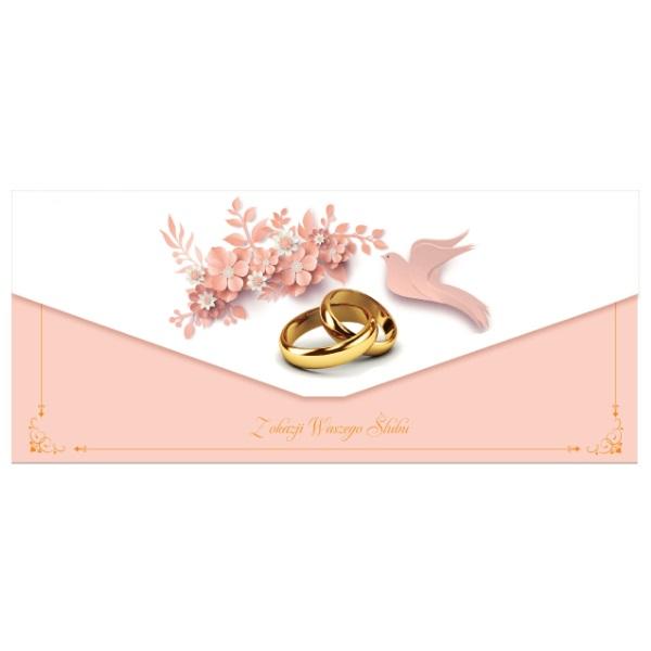 Po złożeniu format kartki DL, wyjątkowe złocenia, w środku życzenia i kieszonka na pieniądze. Dodatkowa koperta