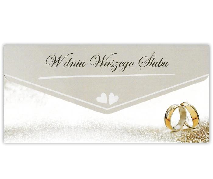 Po złożeniu format kartki DL, wyjątkowe złocenia, w środku życzenia i kieszonka na pieniądze. Dodatkowa koperta