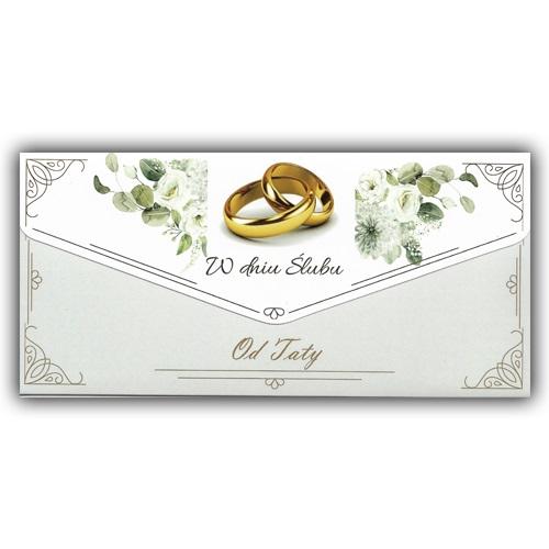 Po złożeniu format kartki DL, wyjątkowe złocenia, w środku życzenia i kieszonka na pieniądze. Dodatkowa koperta