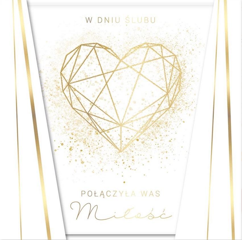 Kartki z serii Primus to więcej, niż się spodziewasz - to pamiątki godne zachowania na przyszłość i oglądania przy okazji wspominania wyjątkowych momentów w życiu. Każdy Primus to małe dzieło sztuki - bogato zdobione, smiałe i bezkompromisowo atrakcyjne. Ślub to wyjątkowa okazja godna wyjątkowego prezentu, który zapadnie w pamięć - a taki właśnie jest ten karnet. Cechy szczególne: wielkość: niestendardowa, zdobienia: dekoracje ze złotej folii, doklejane koraliki, koperta: dopasowana w komplecie, wnętrze kartki: życzenia w środku, okazja: ślub.