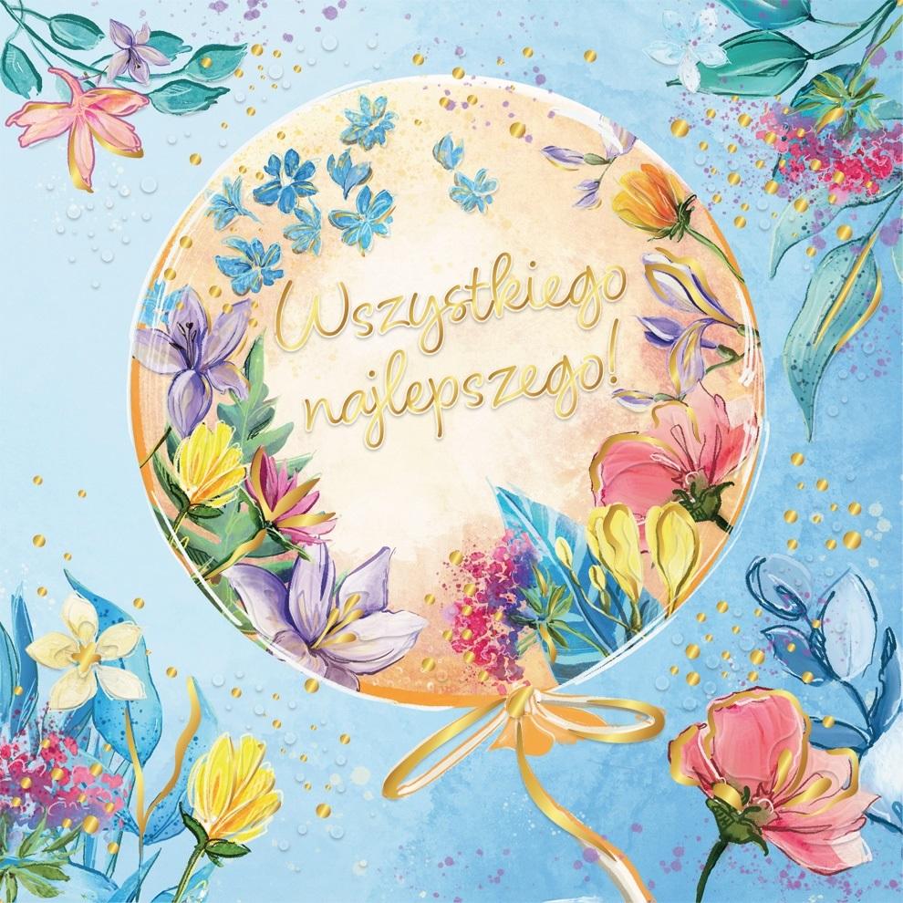 Karnet w formacie 15 x 15 cm. Wydrukowany na wysokiej jakości papierze. Karnet z tłoczonymi wzorami na całej powierzchni oraz złoceniem. W zestawie kolorowa koperta.