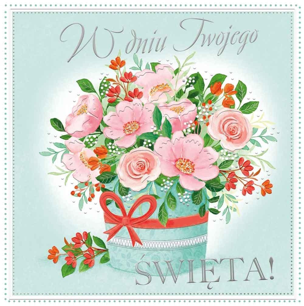 Karnet w formacie 15 x 15 cm. Wydrukowany na wysokiej jakości papierze. Karnet z tłoczonymi wzorami na całej powierzchni oraz srebrzeniem. W zestawie kolorowa koperta.