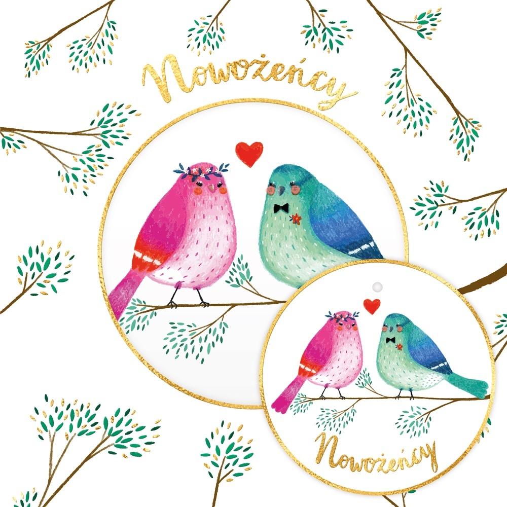Opakowanie Karnet KW koperta z kółkiem Ślub Ptaki