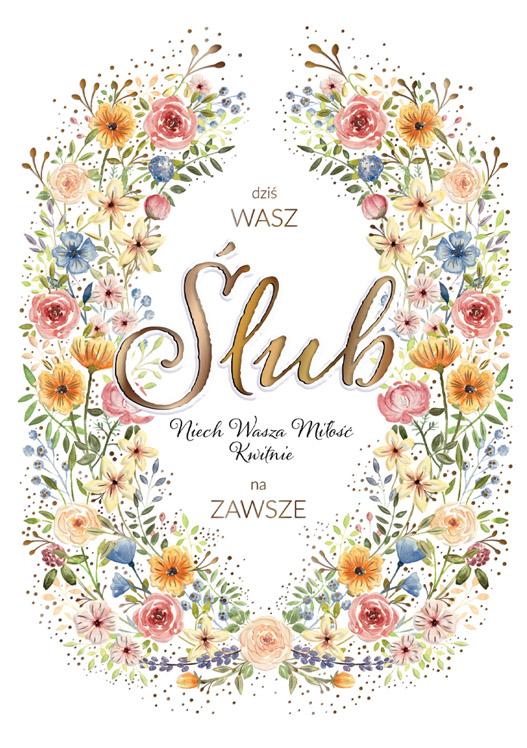 Karnet w formacie A5. Wydrukowany na wysokiej jakości papierze. Karnet ZŁOCONY I TŁOCZONY. W zestawie kolorowa koperta.