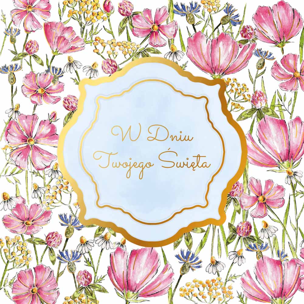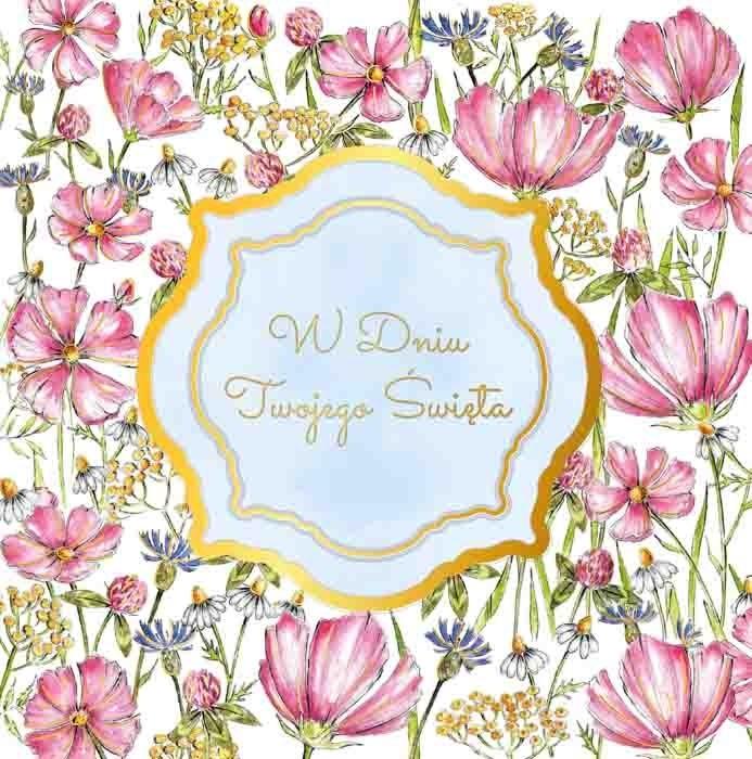 Opakowanie Karnet KW W dniu Twojego święta kwiaty niebieski