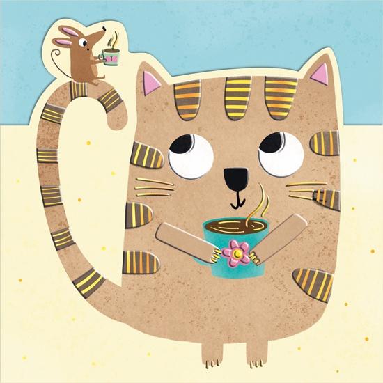 Opakowanie Karnet KW wycinany Urodziny - Kot z myszką