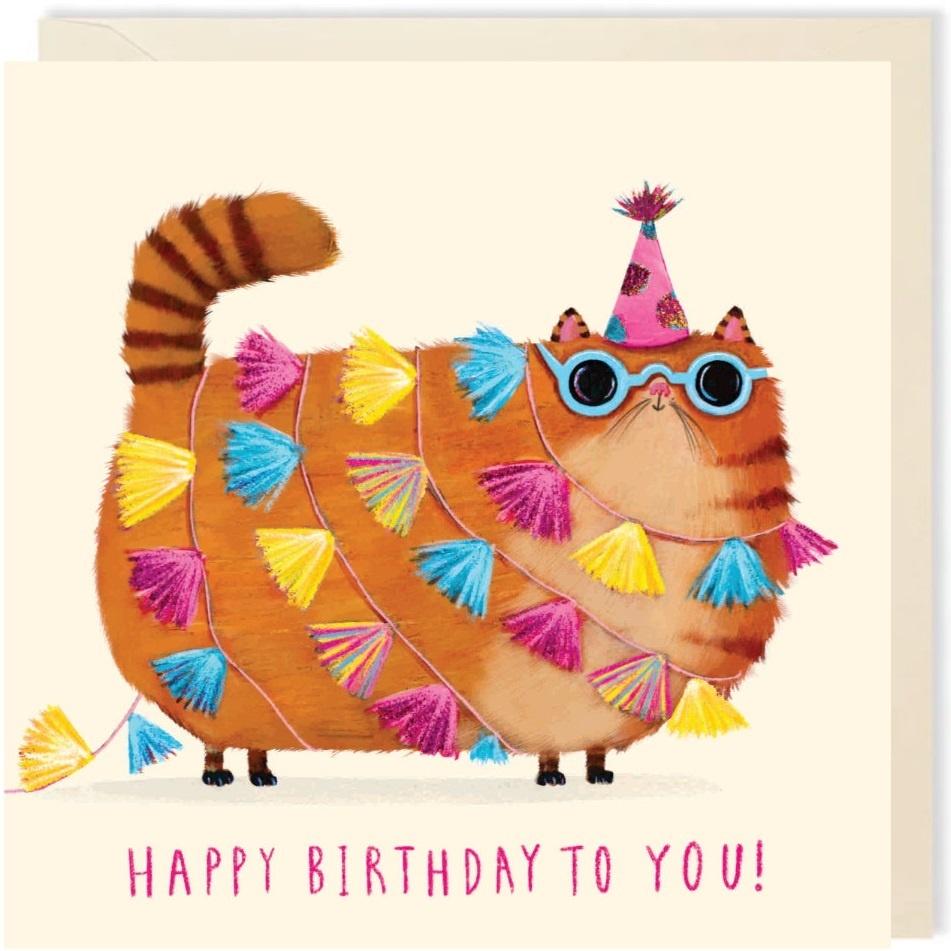 Karnet kwadrat 002 Urodziny Imprezowy kot