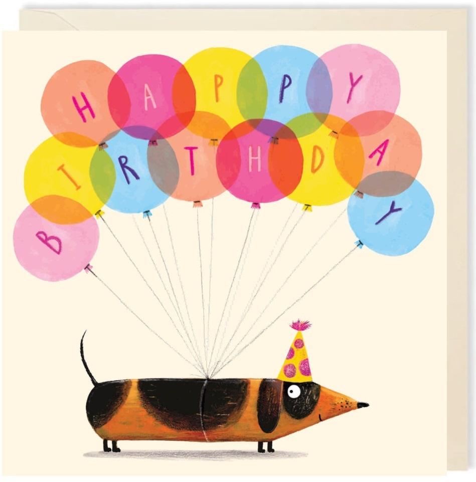 Opakowanie Karnet kwadrat 007 Urodziny Jamnik z balonami