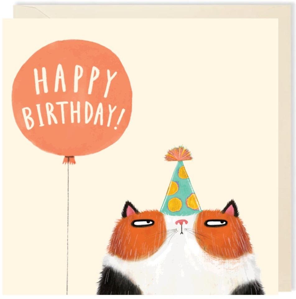 Karnet kwadrat 008 Urodziny Kot z balonem