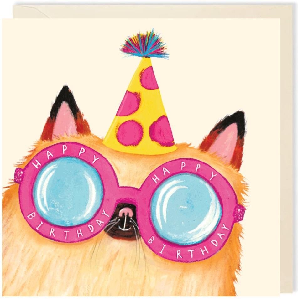 Karnet kwadrat 012 Urodziny Kot w okularach