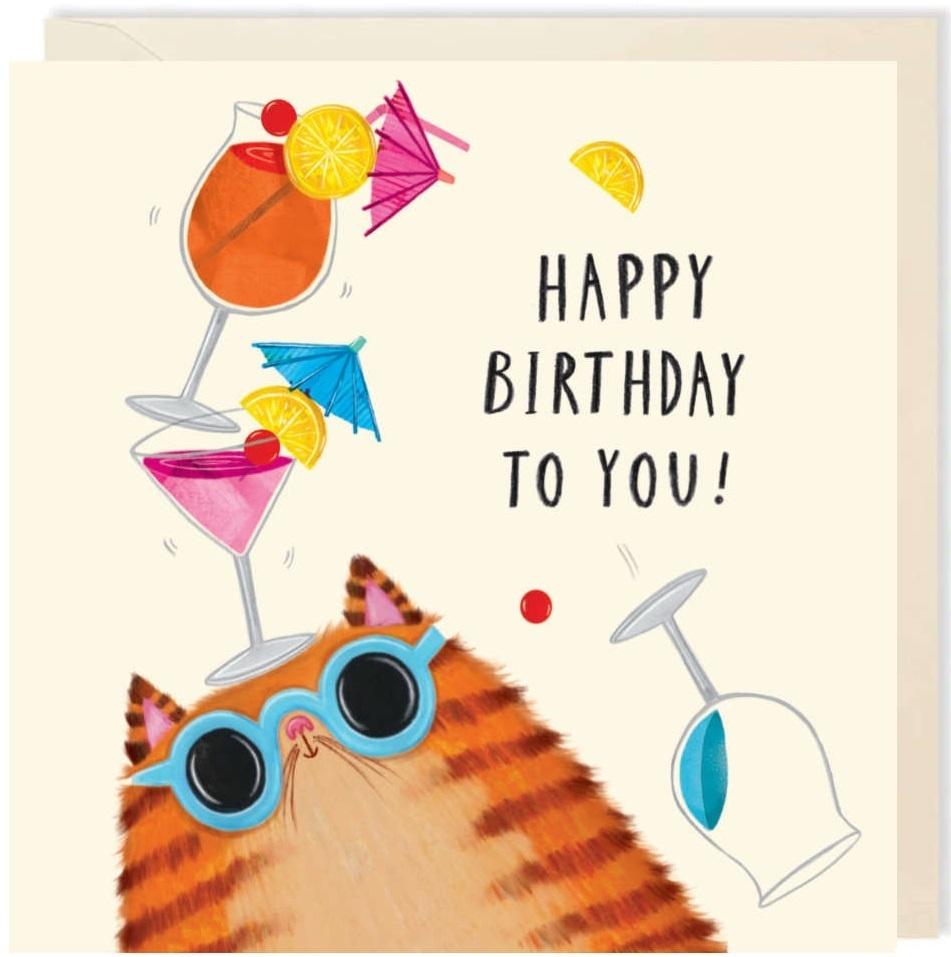 Opakowanie Karnet kwadrat 176 Urodziny Kot z kotajlami