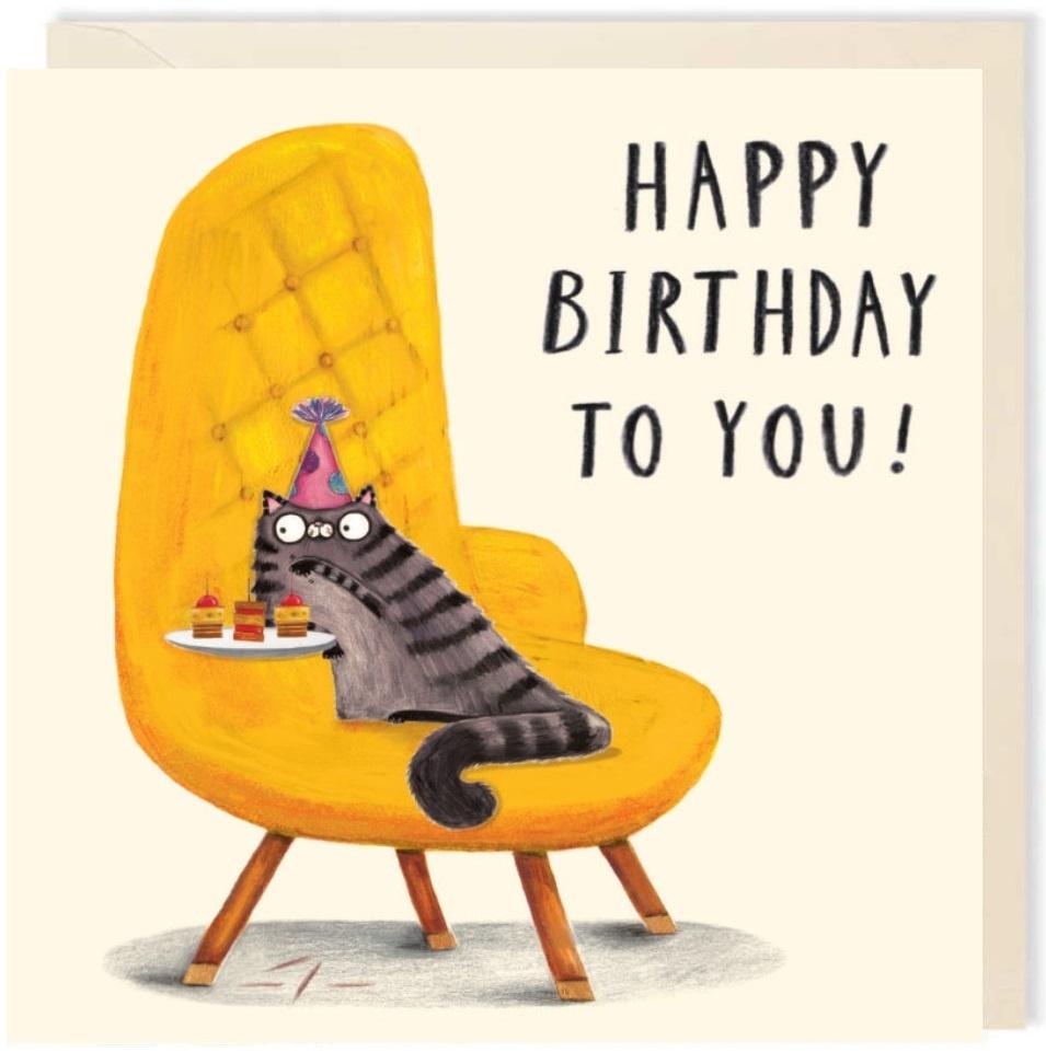 Opakowanie Karnet kwadrat 190 Urodziny Kot z przekąskami
