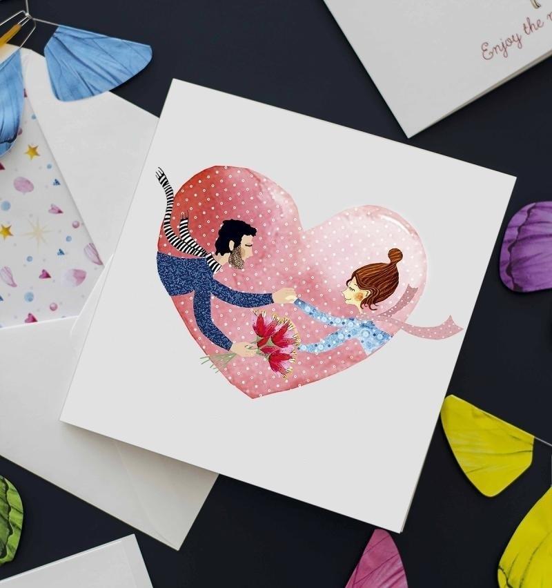 Opakowanie Karnet kwadrat z latającym motylkiem Ślub serce