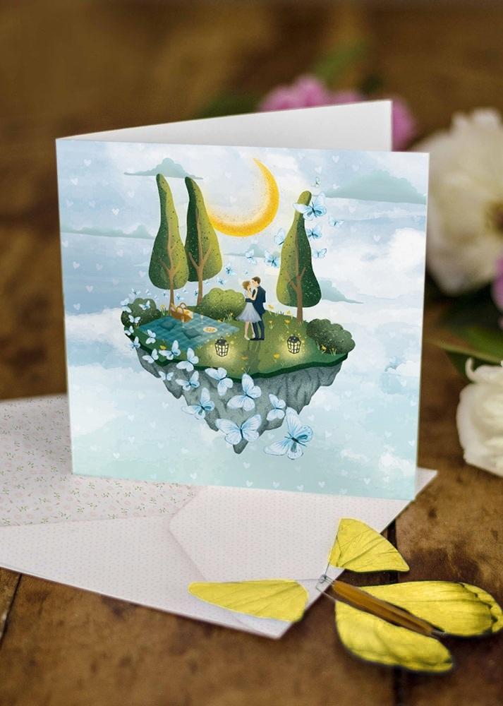 Opakowanie Karnet kwadrat z latającym motylkiem Ślub Wyspa