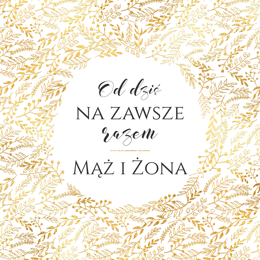Karnet kwadratowy w formacie 20 x 20 cm. Złocony, teksy życzeń w środku. Wydrukowany na wysokiej jakości papierze. W zestawie bilecik do prezentu oraz koperta.
