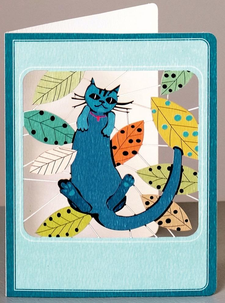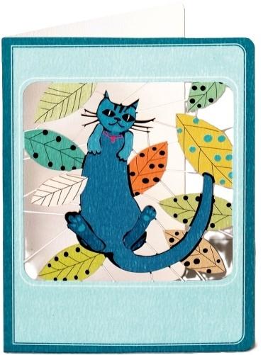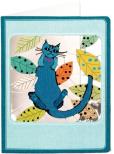 Karnet ME01 wycinany mały + koperta Niebieski kot