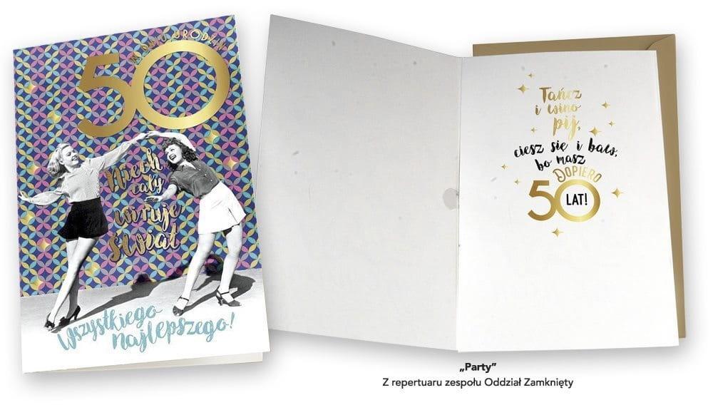 Kartka z niepowtarzalnymi, zabawnymi grafikami, a w środku znane muzyczne nagrania, np. Jesteś szalona"", ""Prawy do lewego"" czy ""Bałkanica"".