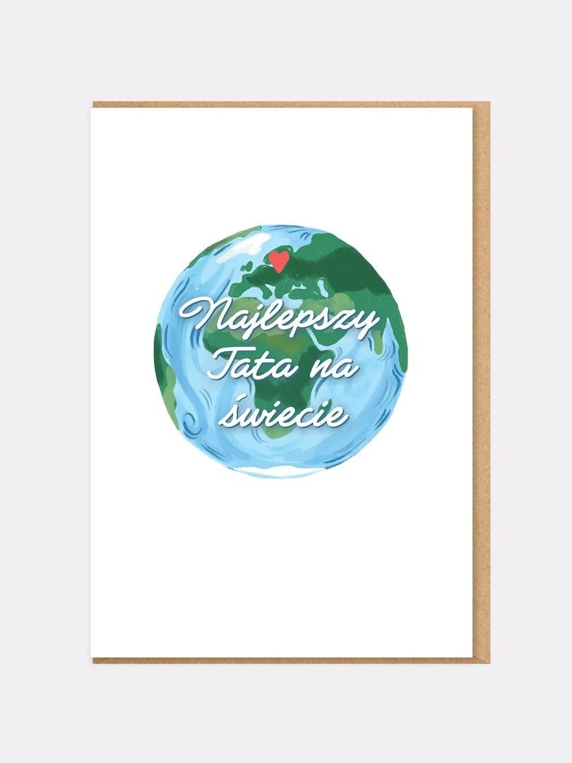 Na rysunkowej Ziemi pojawia się małe serce - jakby ktoś zaznaczył na mapie jedno szczególnie ważne miejsce. Możliwe, że właśnie tam mieszka najlepszy tata na świecie.