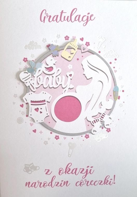 Karnet okolicznościowy z kopertą i życzeniami w środku.