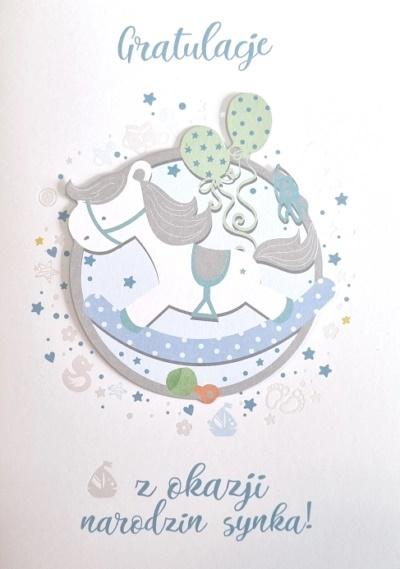Karnet okolicznościowy z kopertą i życzeniami w środku.
