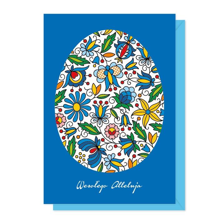 Kartka kaszubska Wielkanoc na ludowo FOLK hafty kwiatowe: inspirowana tradycyjnymi haftami kaszubskimi,doskonały FOLK prezent,sztuka ludowa to idealna pamiątka z Polski,tradycyjny haft kaszubski wykonywany jest ręcznie