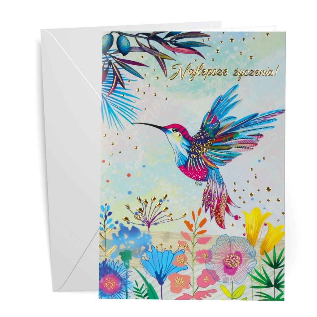 Kartka z kopertą, z życzeniami na różne okazje. Opakowana folią open.