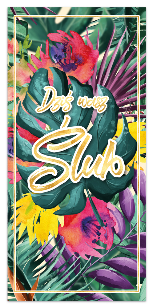 Opakowanie Karnet Pamiątka DL ślub liście tropikalne