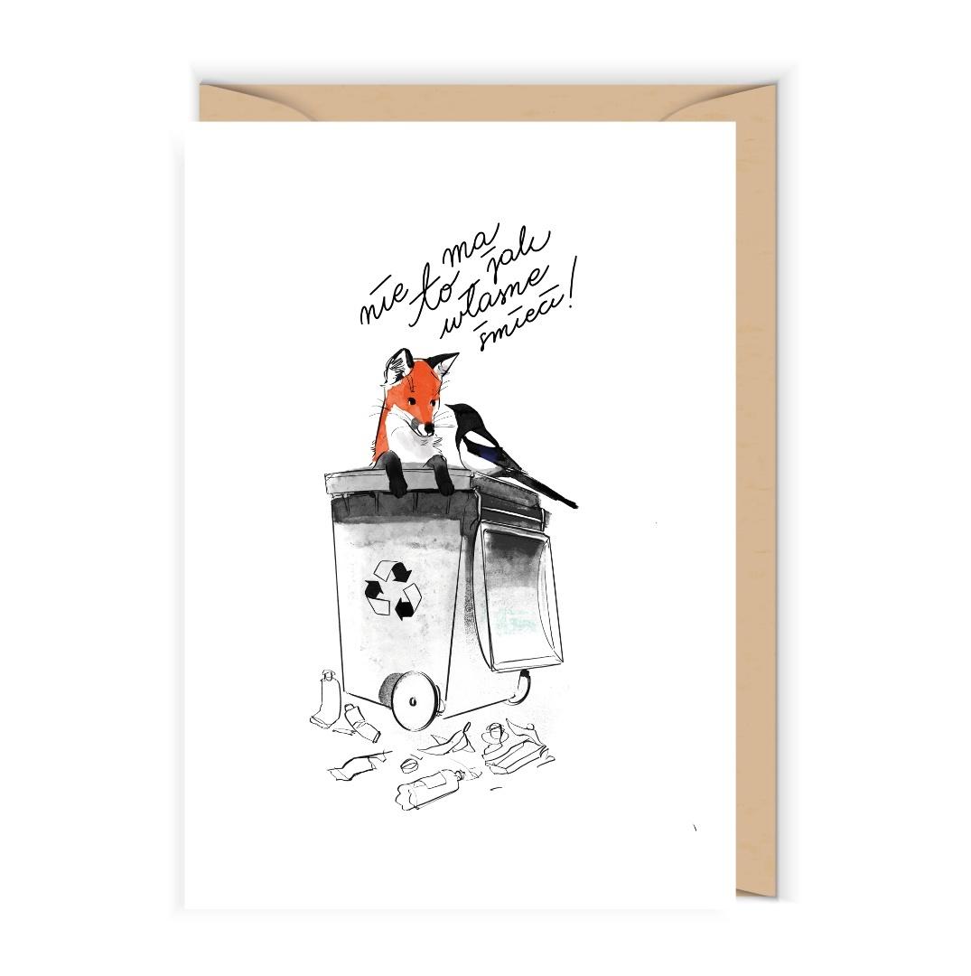 Otwierana kartka, pusta w środku, wykonana na papierze (z certyfikatem EFC) z wyraźnie widoczną fakturą. W zestawie ekologiczna koperta.