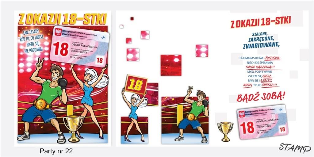 Opakowanie Karnet Party naklejany B6+koperta Urodziny 18 wz22
