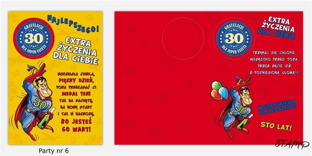 Karnet Party naklejany B6+koperta Urodziny 30 wz06
