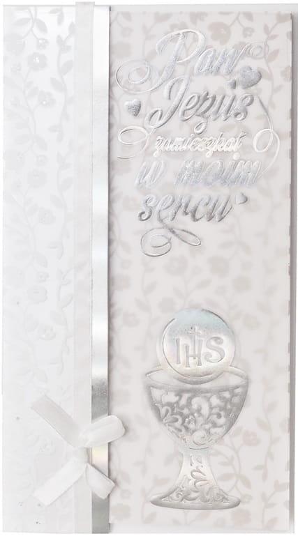 Każda kartka w kolekcji Passion Moments to małe arcydzieło - wyjątkowe i niepowtarzalne, świetne w dotyku, piękne wizualnie, po prostu niepowtarzalne. Kartki PM są bardzo bogato zdobione, a jednocześnie skromne i stylowe, cały efekt tkwi w detalach i doskonałym wykonaniu. W zależności od wzoru, na kartkach znajdują się dekoracje ze złotej, srebrnej, perłowej lub holograficznej folii, a także doklejki biżuteryjne, kokardki, brokat, laserowe wycięcia, wstążeczki i inne dodatki. Wnętrze karnetu do zawsze atrakcyjna grafika i tekst życzeń. Kartki mają w komplecie dopasowaną kopertę. Cechy szczególne: zdobienie: przynajmniej dwie folie (metaliczne/perłowe/holograficzne), brokat, elementy doklejane, wycięcia laserowe, wstążeczki - w zależności od wzoru, wnętrze: kolorowe, z delikatną grafiką, wyjątkowe życzenia w środku, w komplecie: dopasowana kolorystycznie koperta, okazja: komunia.
