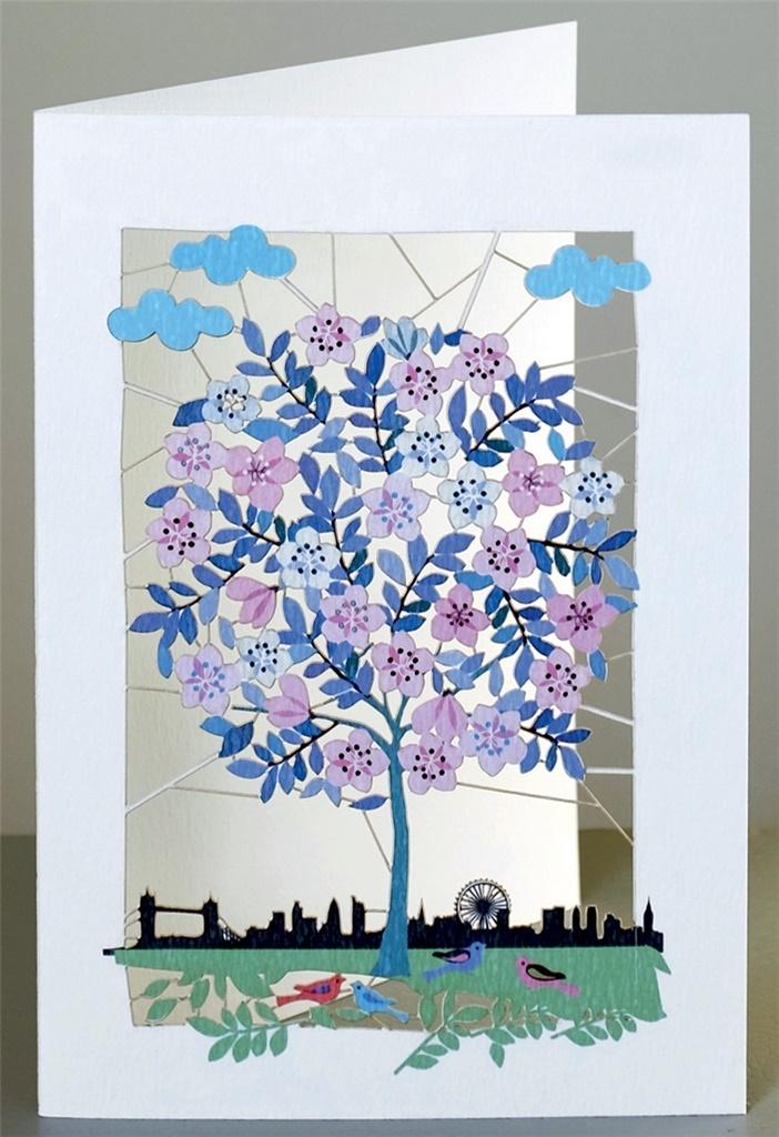 Karnet PM125 wycinany + koperta Drzewo z kwiatami