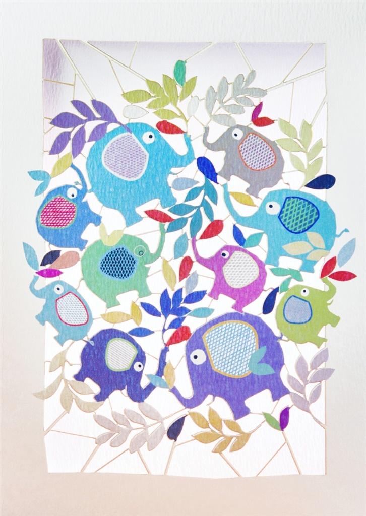 Opakowanie Karnet PM136 wycinany + koperta Słonie