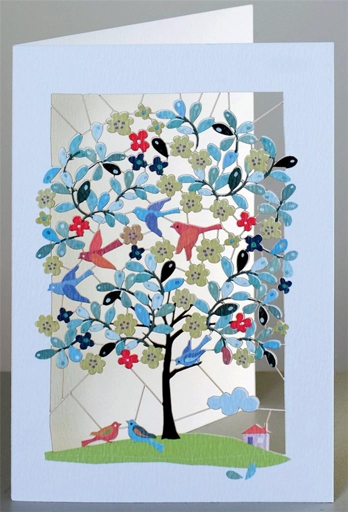 Opakowanie Karnet PM141 wycinany + koperta Drzewo i ptaki