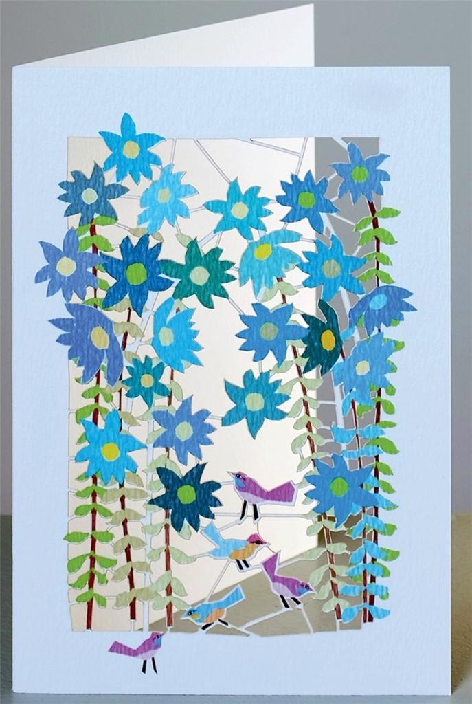 Karnet PM154 wycinany + koperta Niebieskie kwiaty
