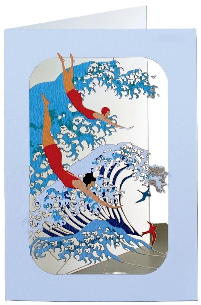 Opakowanie Karnet PM202 wycinany + koperta Fala i pływacy