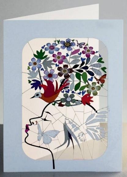 Karnet PM224 wycinany + koperta Kobieta z ptakami