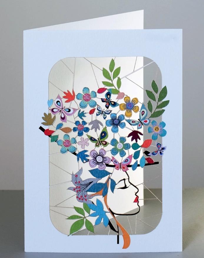 Karnet PM232 wycinany + koperta Kobieta z kwiatami