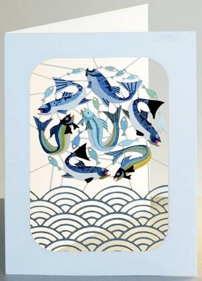 Opakowanie Karnet PM265 wycinany + koperta Ryby i fala