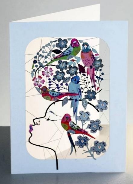 Karnet PM271 wycinany + koperta Kobieta z ptakami