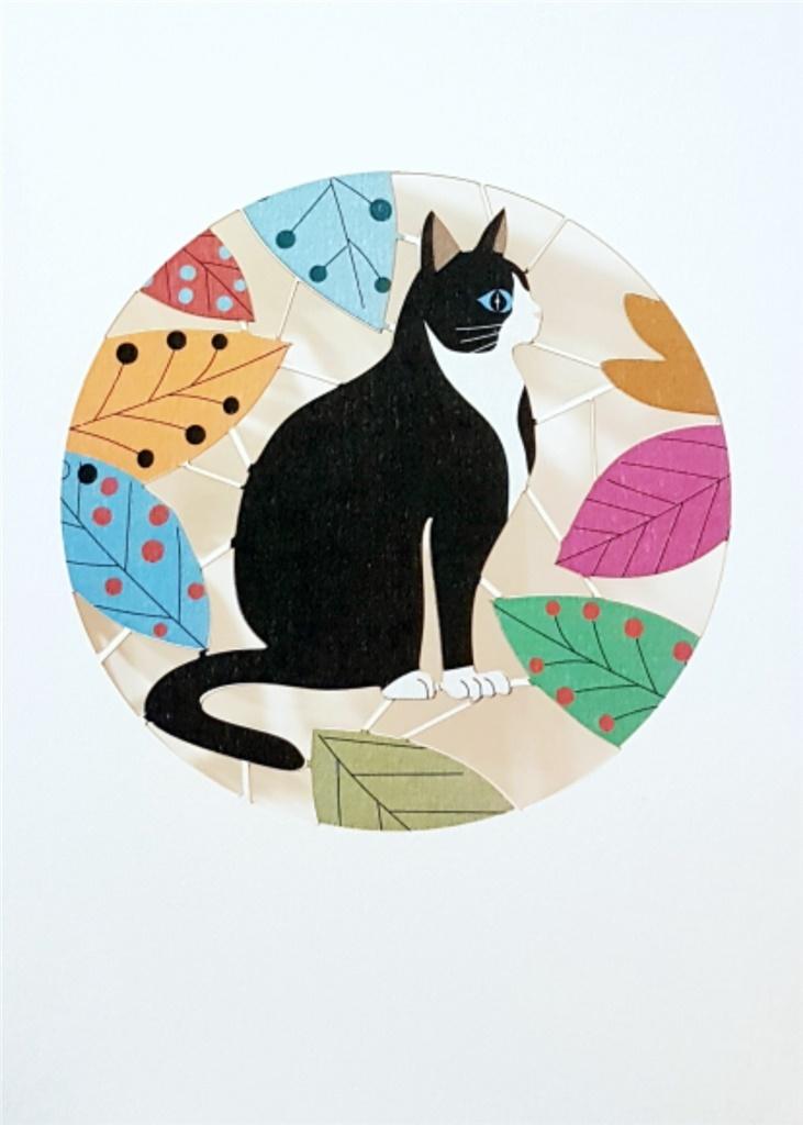 Opakowanie Karnet PM303 wycinany + koperta Czarno-biały kot