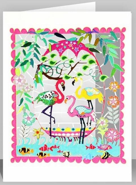 Opakowanie Karnet PM561 wycinany + koperta Trzy flamingi