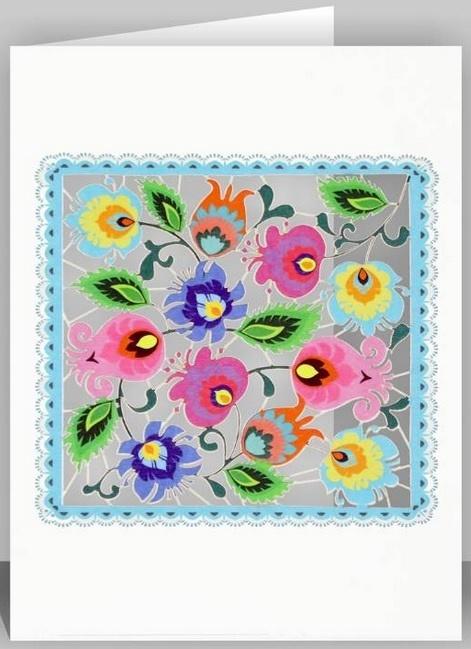 Opakowanie Karnet PM564 wycinany + koperta Folk - kwiaty