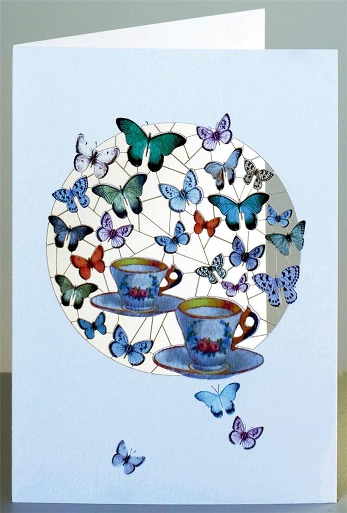 Karnet PM742 wycinany + koperta Motyle i filiżanki