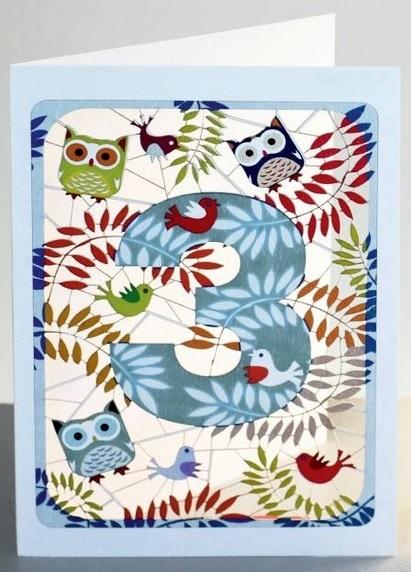 Karnet PM793 wycinany + koperta Urodziny 3 sowy