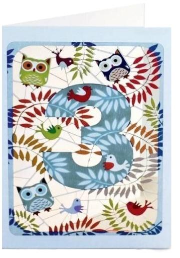 Opakowanie Karnet PM793 wycinany + koperta Urodziny 3 sowy
