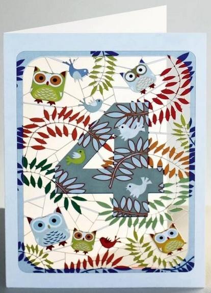Karnet PM794 wycinany + koperta Urodziny 4 sowy