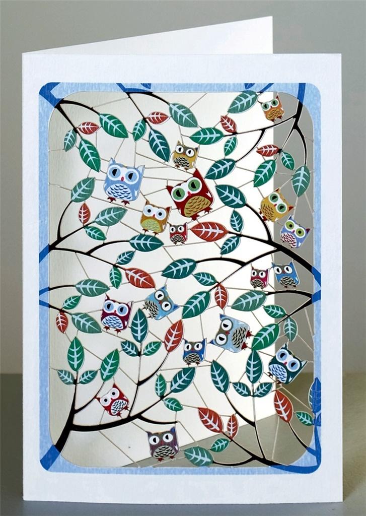 Opakowanie Karnet PM802 wycinany + koperta Sowy i liście